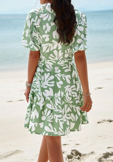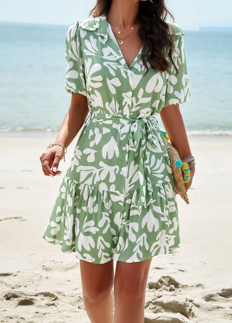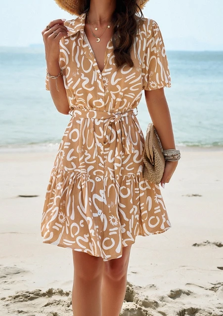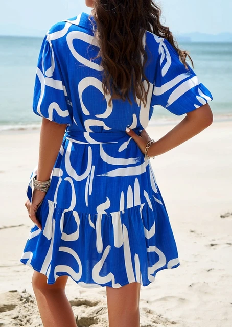Elegante das mulheres Impresso Manga Curta A Linha Vestido Temperamento Pendulares Roupas Femininas Verão Nova Moda Feminina Vestidos Casuais